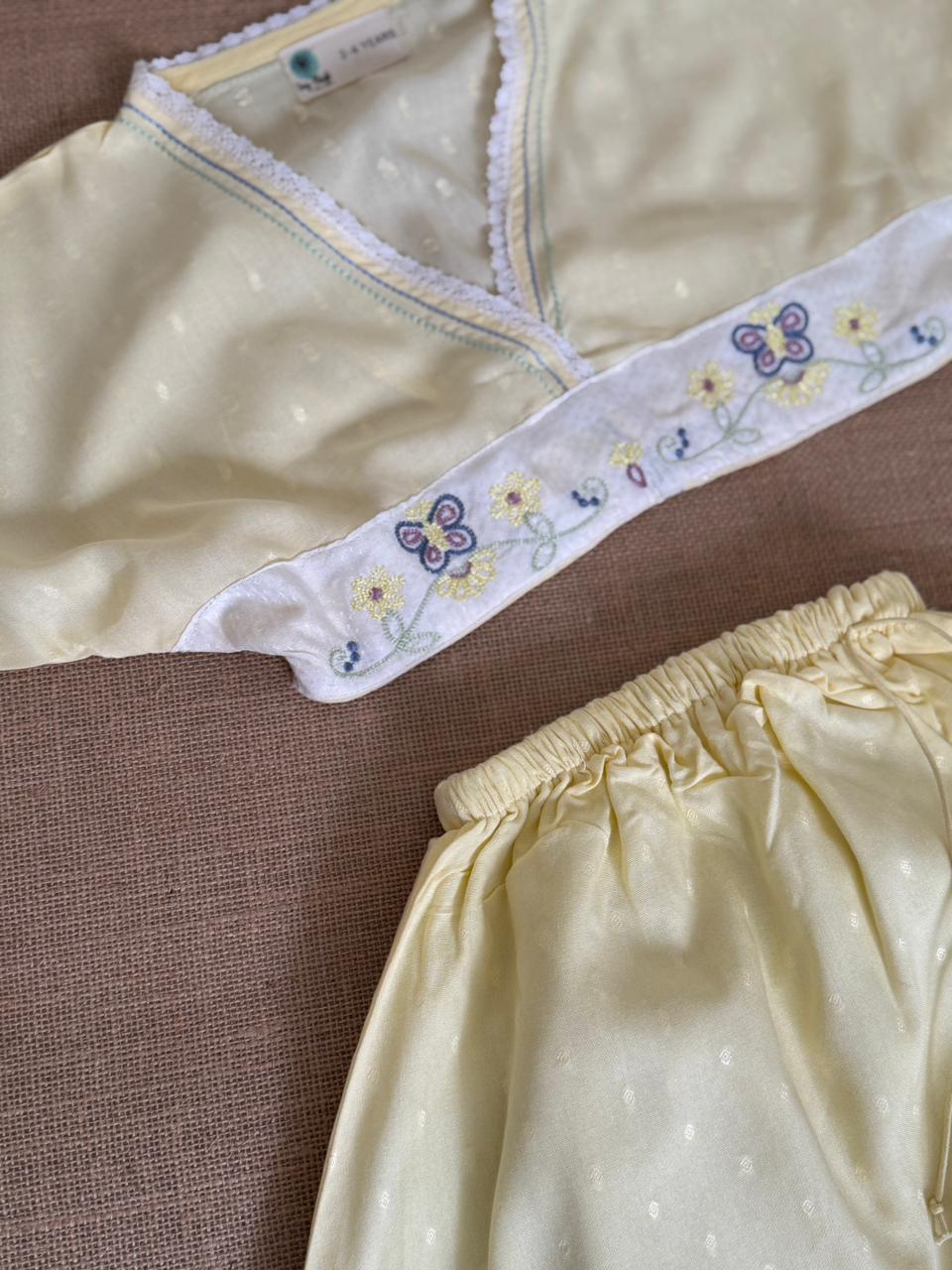 Say hello to summer with our sunshine yellow big bow frock made with Aloe Vera fabric, paired with a hairclip and a matching pair of shoes.